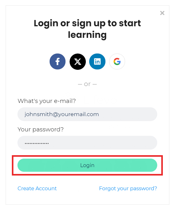 If you've used a social account (Facebook, Twitter, Linkedin, Google) to register to the school then all you need to do is click on the respective button in the Login form.